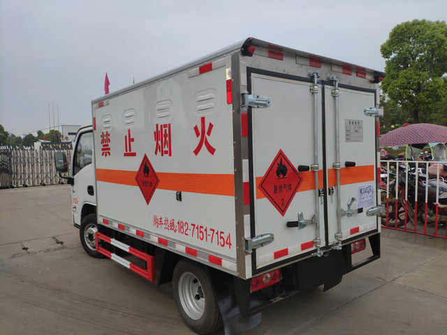 廂體配置:嚴格按照公告尺寸制作,外板采用1mm厚冷軋板有一次性成型的百葉窗,內飾為導電性能良好的鋁板有透氣孔,內襯為矩形管骨架牢靠穩(wěn)定,內部填充為透氣防潮阻燃的擠塑板,四種材料經現(xiàn)代工藝復合而成,廂體外部上下鋁合金型材包邊,底板和車廂前下部鋪橡膠皮,后門雙開,右側中部單開門,內部有固定貨物的臥環(huán),車輛外部有靜電帶、滅火器、防火罩,車廂內安裝煙霧報警器和門防盜報警器,嚴格按照國家危險品相關法規(guī)張貼。