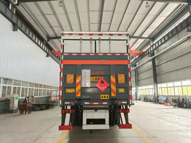 不僅如此雖然該車比較大,但是同樣對于裝卸貨物來說的話也是非常合適的,該車的后部如圖大家可以看到采用的是帶尾板的配置,尾板的升降對于貨物的裝卸有很大的影響作用,叉機來進行裝運貨物的時候,能夠很輕松的把貨物來進行裝運。