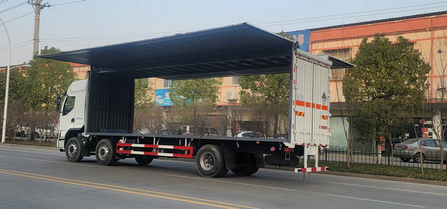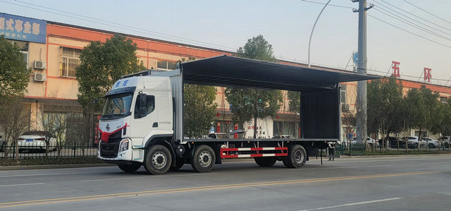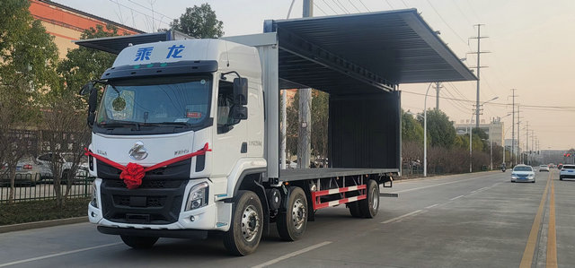廢機油因為多采用的是噸桶裝的形式,普通的貨箱類型恐怕無法達到很好的運輸標準和裝卸要求,那么此款我們所展示的飛翼式車廂就可以完美的達到這個裝卸要求,該車是一款面對15噸左右載重運輸的車型,可以很好的對于各種桶裝貨物有一個上下而且裝卸方便的效果。