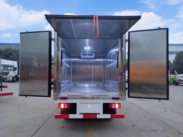 如圖大家可以看一下,這個就是該車的貨箱,主要裝載貨物的地方也就是貨箱的設(shè)備,那么頂部我們配置的有制冷溫度機和紫外線消毒裝置等,將醫(yī)療廢物經(jīng)過包裝好以后,利用制冷機的溫度降低溫度,防止細(xì)菌微生物的滋生,然后紫外線消毒等進(jìn)行消毒從而達(dá)到安全的作用。
