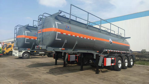 那么這里展示的就是如今比較暢銷的半掛式的危險品罐車,罐車和其他的車型不一樣,該車是可以通過泵的取力來直接進行抽吸的,這種情況來說的話我們會很好的來進行運輸要求。