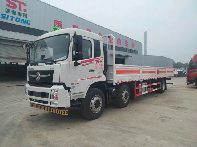 同時大家可以看到該車還可以采用此款欄板式的車型,欄板車型對于我們運輸任何危險物品都是非常合適的,無論是桶裝的貨物還是瓶裝氣體,該車的優(yōu)勢在于裝卸方便,操作簡單,而且此款車的荷載噸位可以達到16噸這樣的標準,廂體的尺寸可以達到9.6米,無論是尺寸還是噸位都是非常足夠大的。
