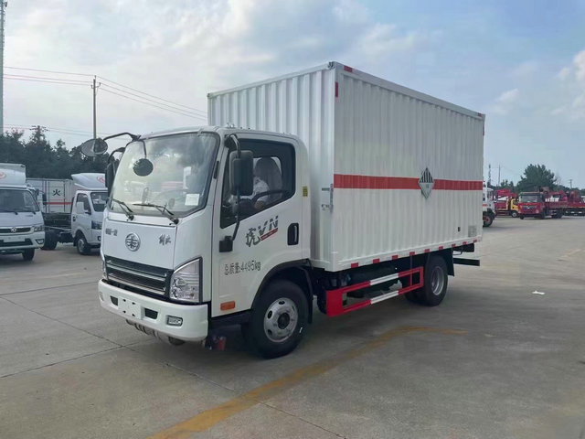 劇毒物品的運(yùn)輸我們采用的是此款廂式貨車的類型來進(jìn)行生產(chǎn)的,廂式貨車對(duì)于運(yùn)輸各類噸桶包裝的貨物有一個(gè)很好的密封安全保障,能夠?qū)τ谡w的貨物運(yùn)輸有一個(gè)很好的穩(wěn)定性,此款圖中的車型我們采用的是解放的車型,是一款廂長(zhǎng)4.2米,可以符合上藍(lán)牌,在市區(qū)配送的標(biāo)準(zhǔn)車型。