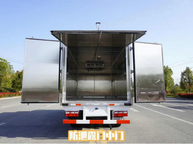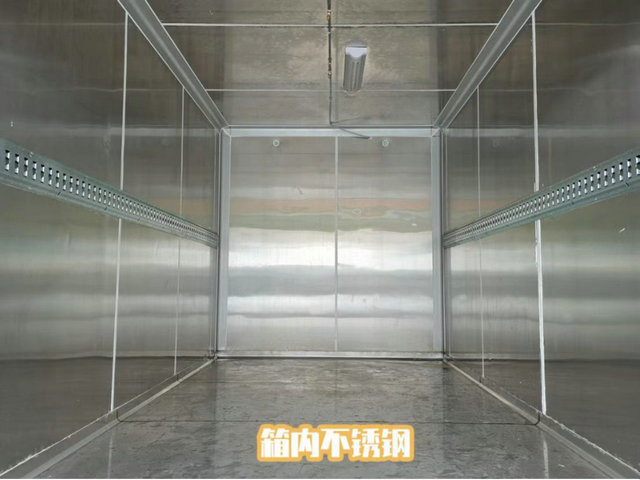 那么廂體作為主要承載的容器,其得益安全保障的前提是什么呢,如圖我們看到的此款圖片就是貨箱內(nèi)的配置,不僅擁有不銹鋼的材質(zhì)作為主要抑制細(xì)菌微生物的滋生,更是有紫外線消毒以及固定貨物的裝置等,前部更是通過制冷溫度機(jī)達(dá)到對于廂內(nèi)溫度的控制等,各個方面都是保障醫(yī)療廢物安全運(yùn)輸?shù)呐渲脴?biāo)準(zhǔn)。