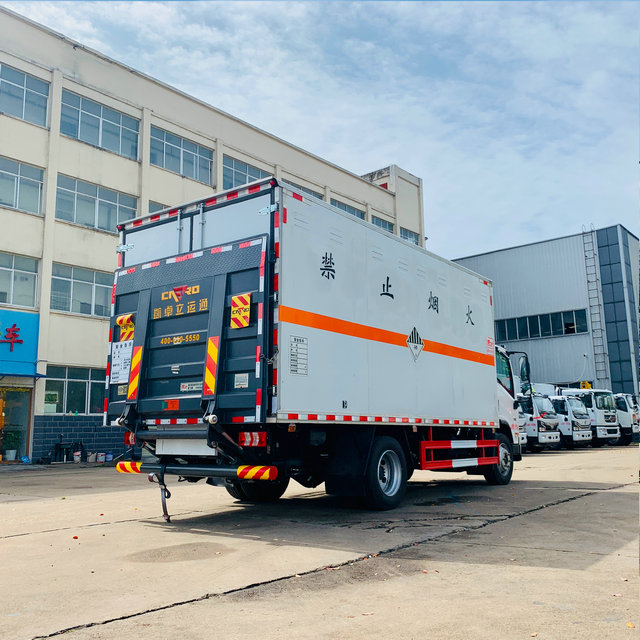 如圖大家所看到此款車型就是運輸2類3項的危險品箱貨車,2類3項可能大家了解的比較少一些,其實這就是指的劇毒氣體,比如液氨液氮等等都是屬于這個類別的,在平時運輸的時候需要我們采用危險品車輛來進行配送,以達到對于貨物運輸的保障。