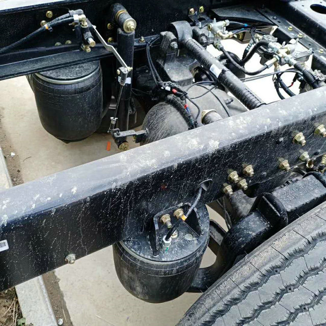 響應(yīng)國(guó)家政策,該車后橋配備氣囊懸掛,當(dāng)在承載貨物較多的情況下,后橋第三輪可進(jìn)行提升,緩解車身承載的重量,達(dá)到穩(wěn)定平衡的效果。