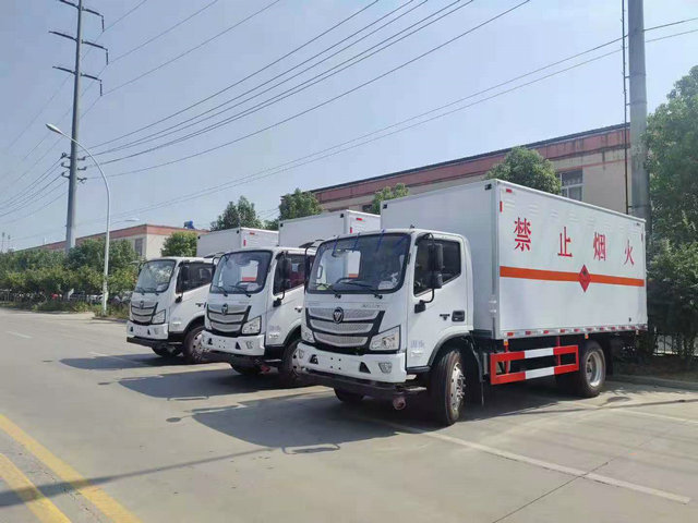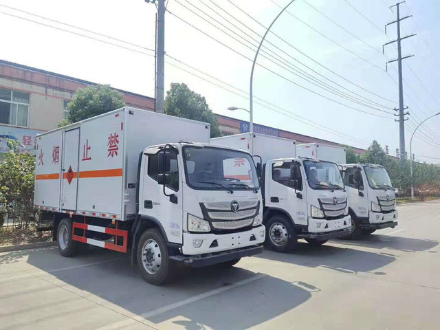 廂體配置:嚴格按照公告尺寸制作,外板采用1mm厚冷軋板有一次性成型的百葉窗,內飾為導電性能良好的鋁板有透氣孔,內襯為矩形管骨架牢靠穩(wěn)定,內部填充為透氣防潮阻燃的擠塑板,四種材料經(jīng)現(xiàn)代工藝復合而成,廂體外部上下鋁合金型材包邊,底板和車廂前下部鋪橡膠皮,后門雙開,右側雙部單開門,內部有固定貨物的臥環(huán),車輛外部有靜電帶、滅火器、防火罩,車廂內安裝煙霧報警器和門防盜報警器,嚴格按照國家危險品相關法規(guī)張貼 。