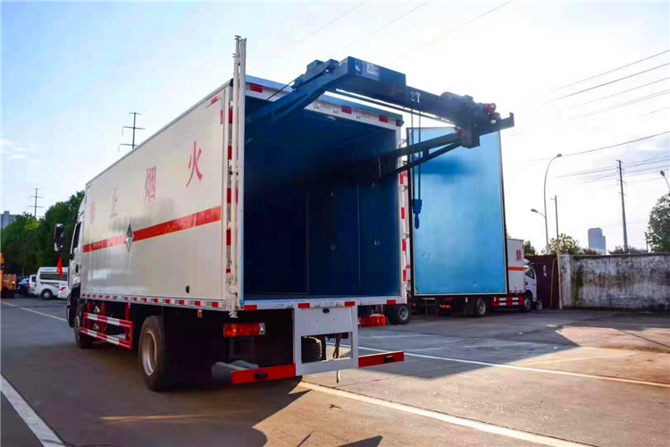 如圖可見,安裝在貨箱內(nèi)的兩側(cè),兩側(cè)為支架,可分別向前后平行移動(dòng),移動(dòng)后,可將貨物放置于吊鉤之上,吊鉤開始工作,向箱內(nèi)移動(dòng),可通過遙控調(diào)節(jié)的方式,調(diào)節(jié)快慢,此款產(chǎn)品已經(jīng)上市,廣受大部分客戶的青睞好評(píng),由過去的人工搬運(yùn)等情況,改為如今的起重設(shè)備進(jìn)行搬運(yùn),將很好的運(yùn)用到起重油桶以及各個(gè)集裝格氣瓶當(dāng)中去,歡迎廣大客戶朋友們咨詢。