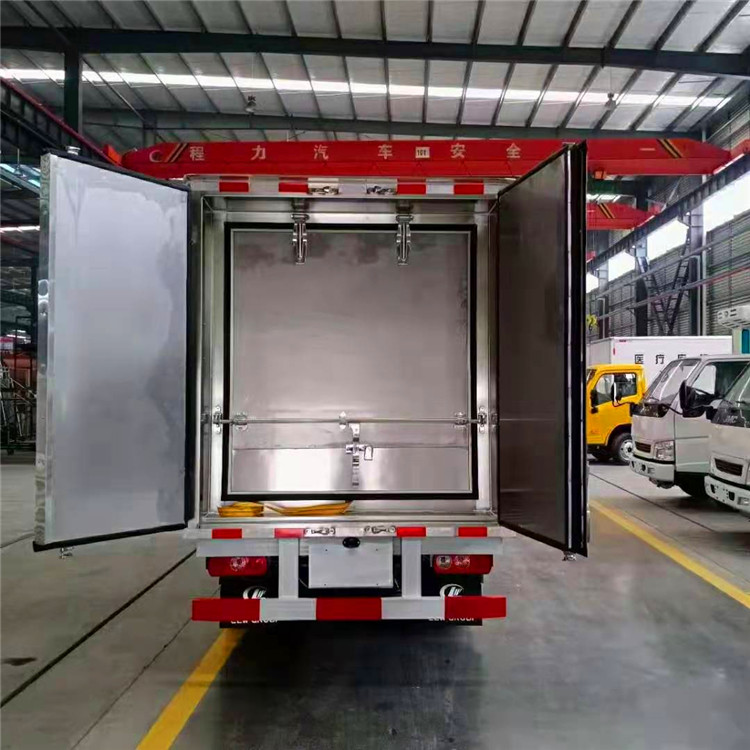 該車的四周內(nèi)部皆采用304不銹鋼材料,看車輛質(zhì)量好不好,板材的材質(zhì)非常關(guān)鍵,因為我們知道,板材的厚度以及材料就是整車質(zhì)量的一大核心,該車之所以采用的是不銹鋼,這種材料不易生銹,而且不容易細菌的滋生,在后門處還配置的有一道內(nèi)門,這種內(nèi)門就是嚴格保障安全運輸?shù)拿芊庑裕浯尉褪窍狙b置,以及降低溫度的制冷機,多種功能,全力保障醫(yī)療廢物的安全運輸。
