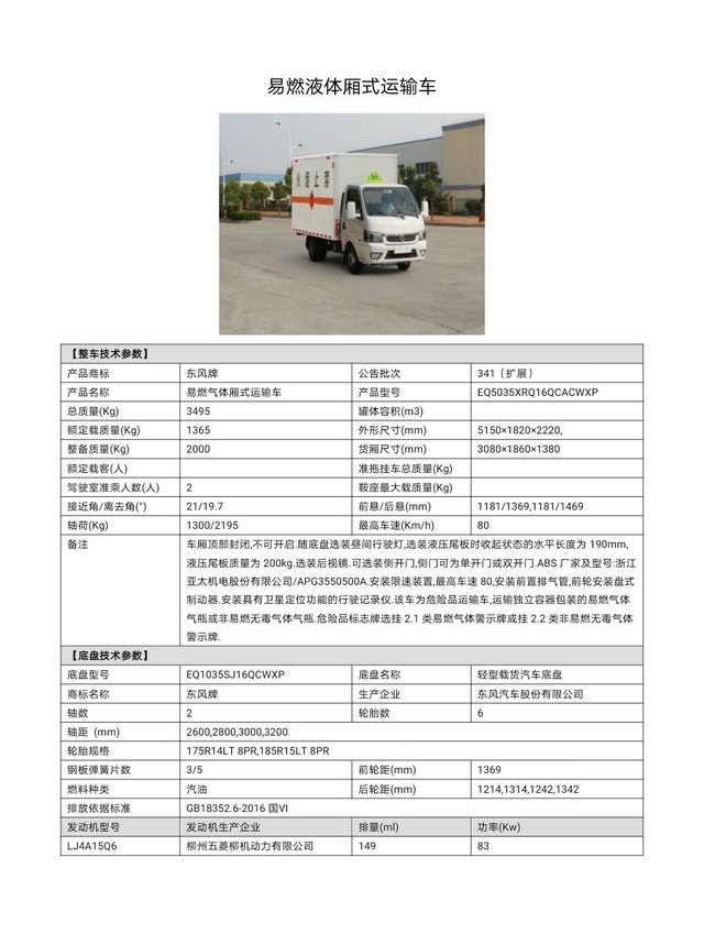 那么如圖所示:就是我們產(chǎn)品車型對應(yīng)的相關(guān)公告,公告上面關(guān)于對車輛的尺寸,噸位,功率大小等等都有著較為嚴格的要求,同時我們生產(chǎn)車型到時候,也需要按照公告的標準嚴格生產(chǎn),否則的話,將會面臨無法上牌等情況,那么如圖我們展示的這款是一款小型的危險品運輸車,汽油版車型,貨箱長為3米左右這樣的一款車型,適合市區(qū)配送,小型運輸。