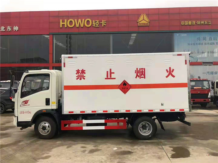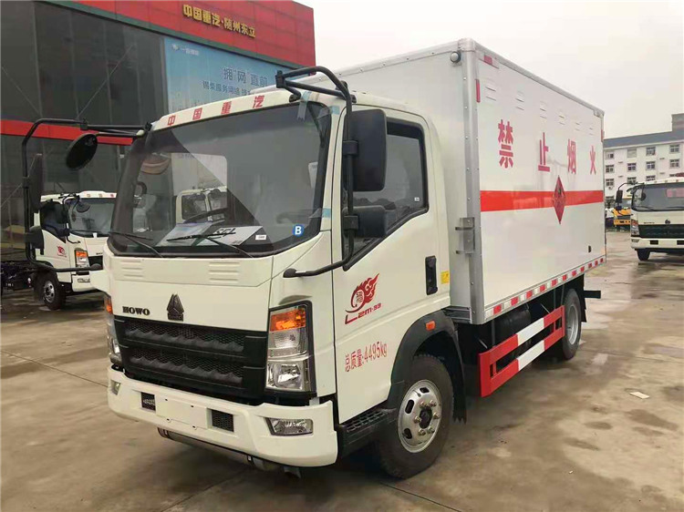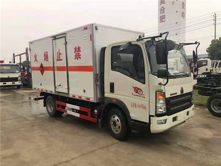 如圖所示,就是我公司展示的這款豪沃的危險品車型,此款車型為上藍牌的標準車型,該車貨箱采用的是長寬高:4100X2100X1800(MM),這樣的一個車型尺寸,該車型可以很好的適應大型貨物噸位的運輸,在運輸方便,是沒有問題的,那么豪沃車型在同款類型車輛當中是比較合適的。