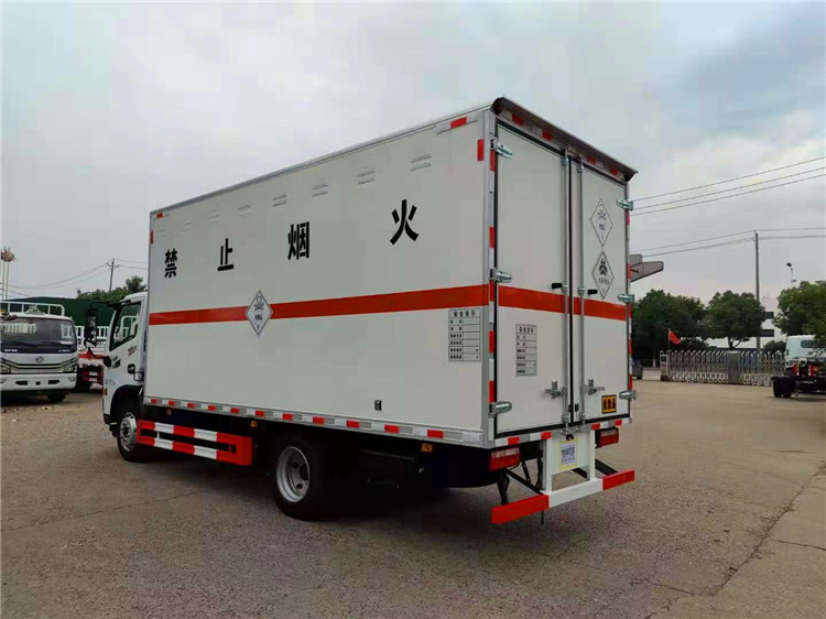 如圖我們所展示的這款就是貨箱長5米2左右的車型,荷載噸位6.5噸這樣,這是對(duì)于大型載貨噸位運(yùn)輸?shù)囊筌囆,也是根?jù)廣大客戶所青睞的合適噸位來推出的一款新車型,該車可以廣泛的所運(yùn)輸各種6類的危險(xiǎn)品,其貨箱結(jié)構(gòu)形式更是多元化為了運(yùn)輸而設(shè)計(jì),在廂體的兩側(cè)我們可以看到危險(xiǎn)品安全標(biāo)示。