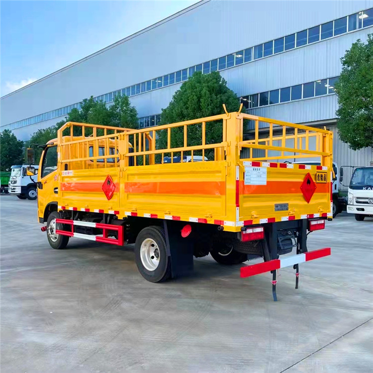 該車型我們可以選擇廂式或者是欄板形式的車輛,當(dāng)然不同的類型自然有其不同的作用,可以運輸廣泛的各種危險品標(biāo)志,如圖我們看到的這款車主要是欄板形式的,用于各類氣瓶的運輸裝卸。