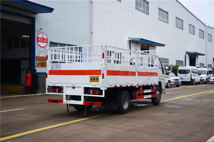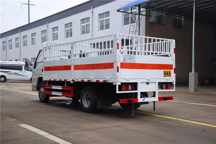 如圖我們所展示的這款車型為江鈴的平板危險品車,那么這種危險品車輛就是說首先是符合規(guī)定,可以運輸氧氣瓶以及各種危險品的,有合規(guī)的手續(xù)流程,其次底盤上面的一些配置可以很好的是起到安全限速,以及防撞等效果,欄板的材料也是采用的是一定的防撞以及防腐蝕性的材料生產(chǎn),這樣對于我們運輸各種危險品相對來說安全許多。