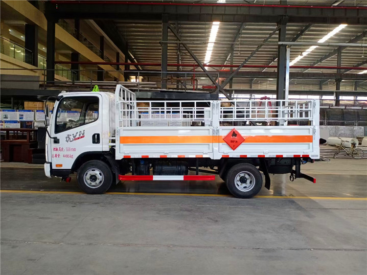 另外我們再來展示一下車輛的后部以及這樣全面的一個展示圖,可以看到四周的高欄結(jié)構(gòu)對于我們運輸各種瓶裝氣體,或者是噸桶裝貨物的形式都是相對來說安全許多的,這樣的配置以及結(jié)構(gòu)對于集裝格形式的貨物可以起到高效,穩(wěn)定的運輸效果,四周的倉欄都是可以方便拆卸下來的,輕松方便。