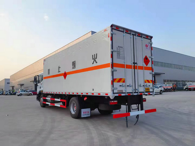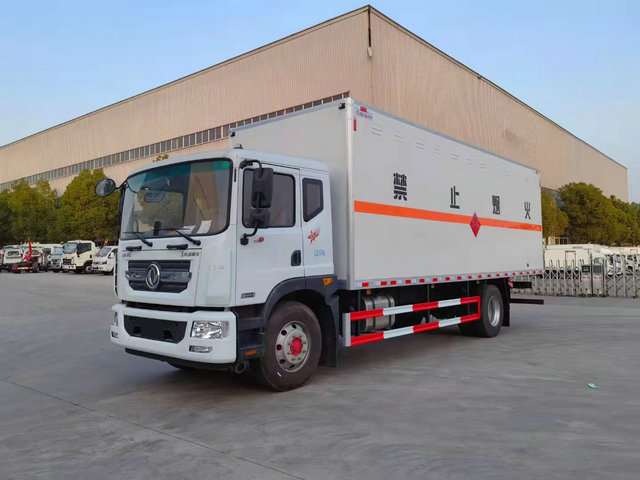 因為是噸桶包裝運輸行駛,所以這個類別的危險品一般在運輸起來需要大一點的車型,因為大車型足夠載重貨物對于危險品的運輸載重等有一個比較好的承受能力,我們如圖看到的這款車為東風10噸左右的車型,該車廂長6.8米,是一款非常適合長途以及大型運輸?shù)妮d貨車輛。