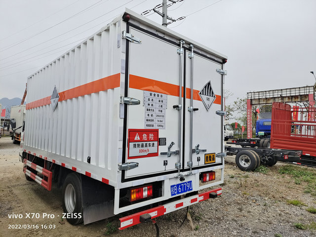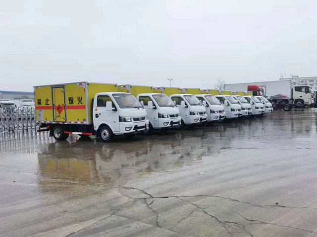 如圖所示我們展示的這款密封箱式貨車就是用于易燃固體危險品進行配送的,該車的車型比較小,適合在市區(qū)或者是鄉(xiāng)鎮(zhèn)等地方進行配送,貨物的噸位大概在1-2噸的樣子無疑用該車運輸是非常合適的選擇。