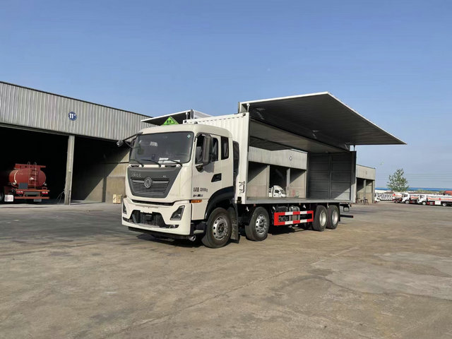 如圖給大家介紹的是一款飛翼貨箱的危險品車型,該車的兩側箱體可以飛翼展開,可以很好的方便與我們從任何角度來進行裝卸貨物的要求,該車是一款載重20噸標準的要求車型,可以很好的方便于我們進行噸桶包裝的危險品貨物。