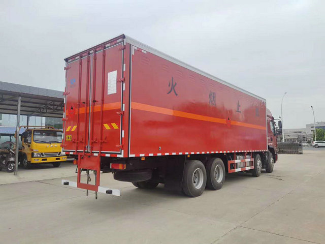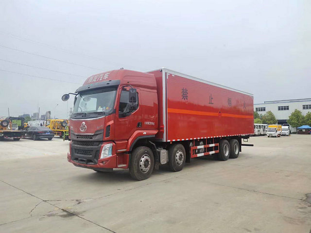廂體配置:嚴格按照公告尺寸制作,外板采用1mm厚冷軋板有一次性成型的百葉窗,內(nèi)飾為導電性能良好的鋁板有透氣孔,內(nèi)襯為矩形管骨架牢靠穩(wěn)定,內(nèi)部填充為透氣防潮阻燃的擠塑板,四種材料經(jīng)現(xiàn)代工藝復合而成,廂體外部上下鋁合金型材包邊,底板和車廂前下部鋪橡膠皮,后門雙開,右側(cè)中部兩個雙開門,內(nèi)部有固定貨物的臥環(huán),車輛外部有靜電帶、滅火器、防火罩,車廂內(nèi)安裝煙霧報警器和門防盜報警器,嚴格按照國家危險品相關(guān)法規(guī)張貼。