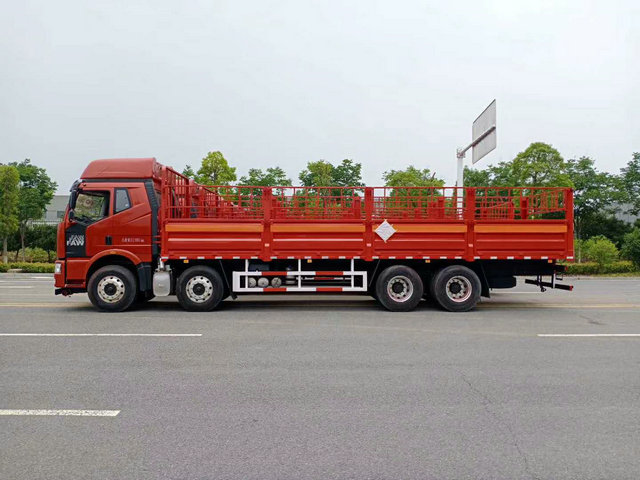 該車是前四后八車型,320馬力,是目前的車型當中,荷載噸位最大,也是唯一的一款車型,采用的是解放J6駕駛室,九檔變速箱,主要是用來運輸2類當中的2類1項,2類2項氣體,如:乙炔氧氣,工業(yè)氣體,壓縮天然氣,杜瓦瓶等等,對于長途運輸物流危險品的用戶,該車無疑是優(yōu)先選擇。