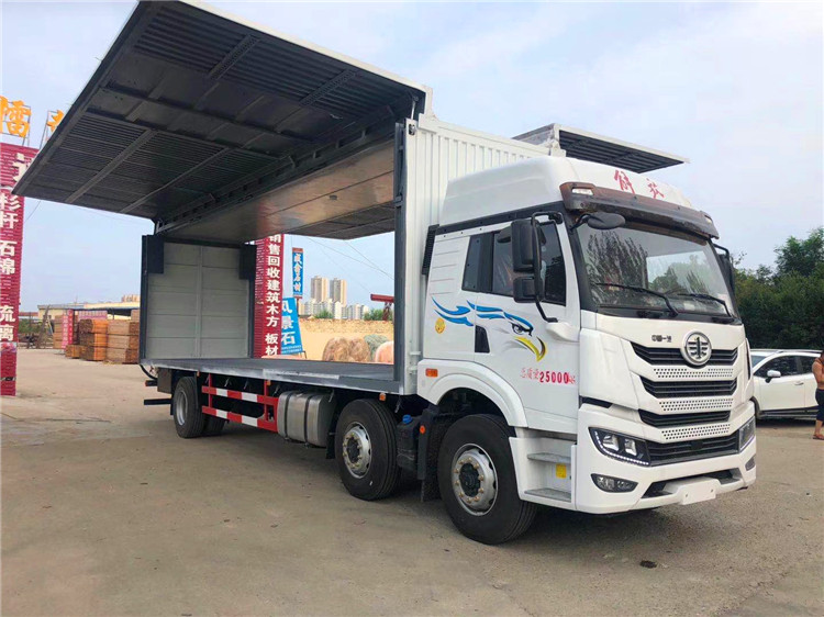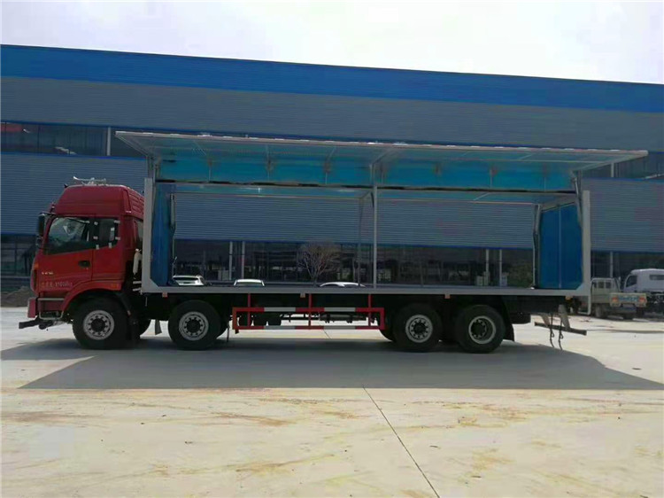 兩側(cè)翼展廂體可分別同時(shí)打開,通過遙控操作,讓液壓油缸支持廂體向上展開,用戶可在兩側(cè)進(jìn)行貨物的裝卸,操作輕松,簡(jiǎn)單方便,非常適合用于各種桶裝油類等貨物的裝運(yùn)。