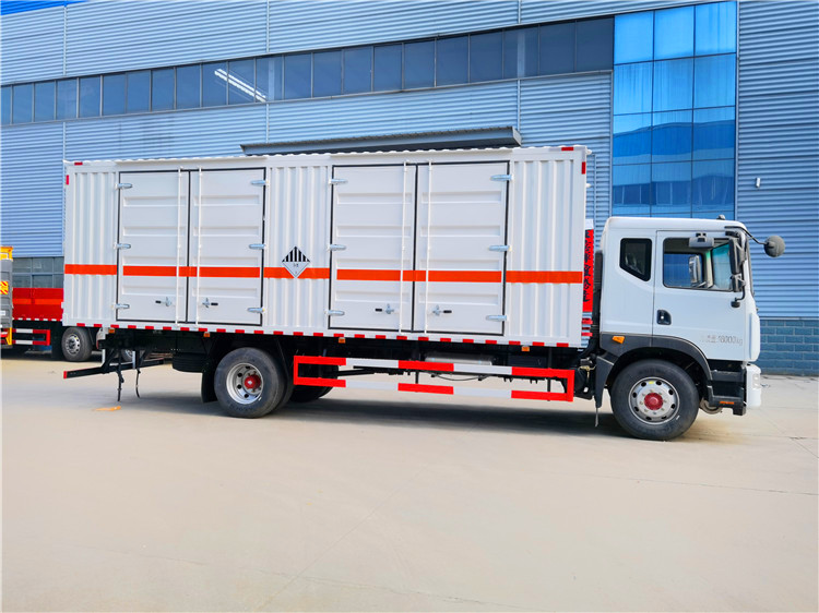 八類危險品運輸車按照用途區(qū)別,可以分為罐式運輸,和廂式運輸,今天我們講到的是廂式運輸,主要是運輸袋裝或者桶裝,打包之后進(jìn)行運輸配送的,那么這樣的車型不僅裝卸方便,而且操作非常簡單,車型價位上也比罐式車輛更加經(jīng)濟(jì)實惠,如圖我們看到的這種是運輸10噸左右腐蝕性物品的車輛,廂長是6.8米,那么用來運輸長短途是非常合適的車輛。