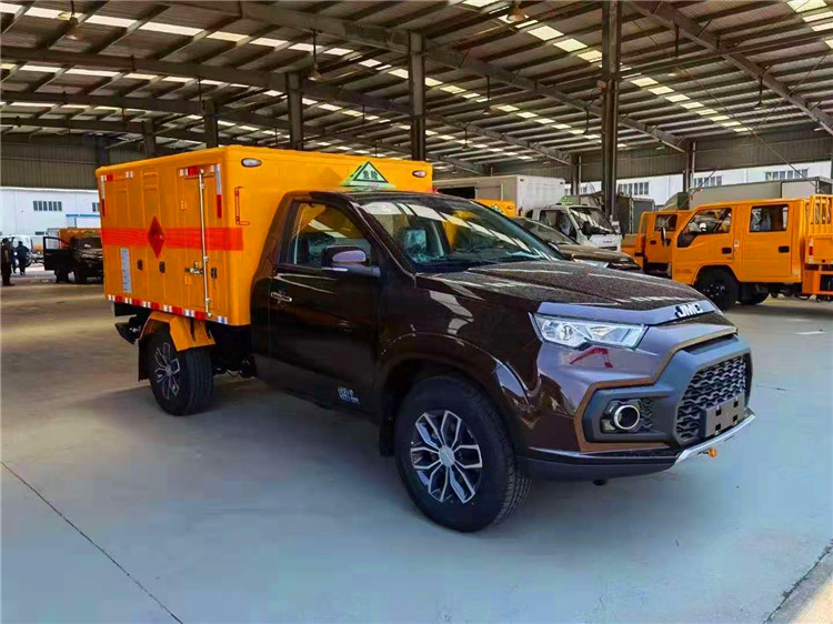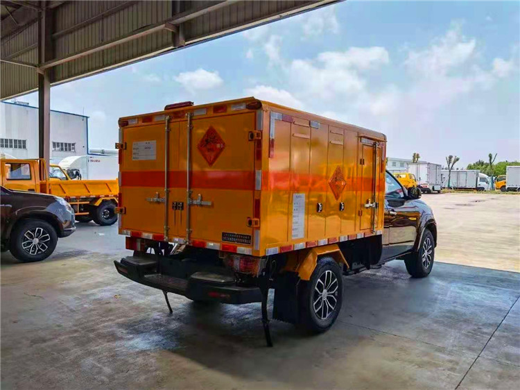 這里介紹的一款為江鈴皮卡的車型,皮卡形式的火工品運(yùn)輸車為一些限高的地方工礦路段行駛,該車為四驅(qū)制動(dòng),柴油發(fā)動(dòng)機(jī)140馬力,六檔變速箱,我們所采用的這款江鈴皮卡車型整車高度不超過(guò)2.3米,是非常適合小型運(yùn)輸行駛的,該車的荷載噸位為500公斤左右這樣的一個(gè)噸位,用于運(yùn)輸各種危爆品的運(yùn)輸配送。