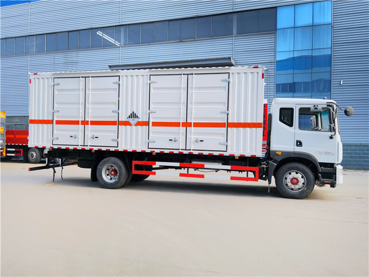 這款車型為東風(fēng)的易燃?xì)怏w車型,貨箱形式的,尺寸也是7600X2400X2500(MM),這樣的車型尺寸,噸位也是10噸左右,不過貨箱形式結(jié)構(gòu)的車型可以運輸包括易燃?xì)怏w,易燃液體和危廢雜項等等,那么欄板車是只能運輸二類氣瓶的運輸?shù),因為露天形式的結(jié)構(gòu)車型沒有一個很好的密封保障。廂式貨車的結(jié)構(gòu)在密封安全性能上面還是安全很多。
