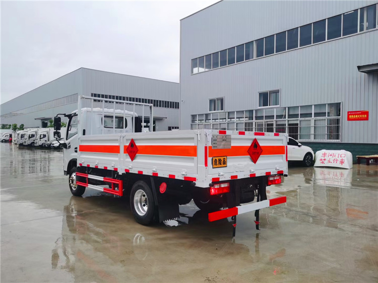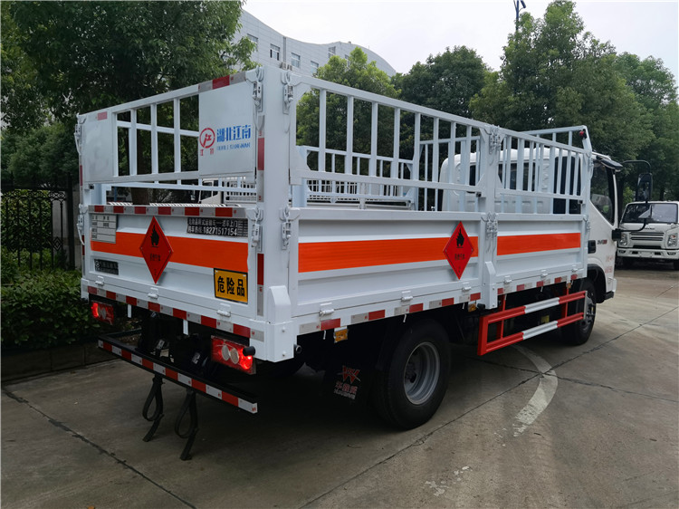 如圖所示,就是安裝護欄之后的危險品車圖,這種車型可以進一步的保障在運輸時候的安全,使其鋼瓶不會輕易掉落,那么這些類的車型一般我們認為4米2類型的車輛銷售是比較好的,因為貨箱長4米2的車輛,不僅可以滿足市內配送的要求,而且車型夠大,能夠起到承載噸位的要求。