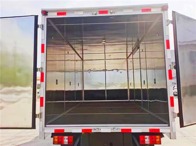貨箱的內(nèi)部我們可以看到,目前采用的這種都是符合類似桶裝油運輸?shù)臉藴蕩w,該車廂非常適合噸桶一般的危險品來進行配送,前后可以載重大概4-5噸這樣的危險貨物。