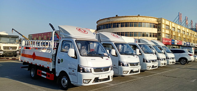 該車大家看一下,可以很好的滿足這種各種貨物的運輸需求,如圖我們看到的這五臺車輛就是用于嘉興某液化氣站所運輸配送液化氣的專用車,該車輛可以一次裝放50個瓶子左右,這樣的話對于小型運輸?shù)脑捒梢哉f是很足夠的,而且對于這樣的車型我們一般可以很好的滿足駕駛舒適的要求等。