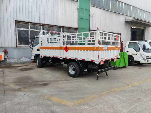 欄板車型如圖介紹,就是類似的這種可用于各種瓶裝氣體的裝卸運輸工作,該車對于3-5噸的氣瓶運輸有非常好的作用,而且裝卸的時候較為方便,目前我們很多的液化氣運輸包括瓶裝氣體的運輸都采用這款車來進(jìn)行工作。