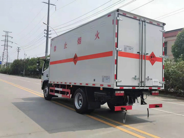 大家請看,該款車型就是用于易燃固體來進行運輸配送的車型,全車呈貨箱形式的結構車型,可廣泛的運輸各種黃磷,白磷等具有易燃性質的固體危險品,雖然這類別的危險品很少見,但卻是不可少的用于工作當中的化學物品等。