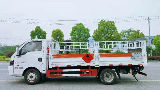 如圖所示,該車就是小型危險品車型,該車可以很好的工供液小型貨物的配送運輸,倉欄式的車身也是對于各種瓶裝氣體,小型的甲醇油漆等配送無疑是非常合適的選擇。