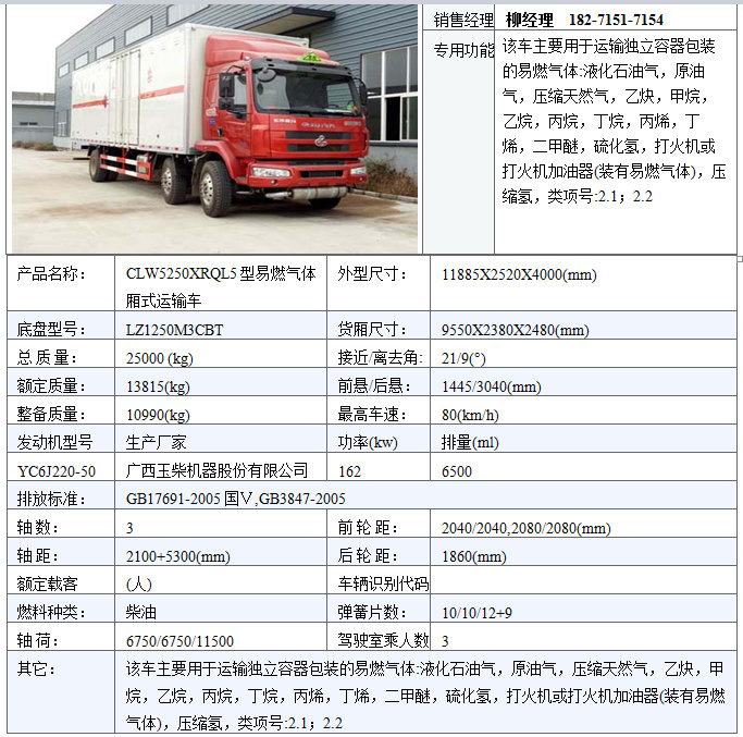 柳汽易燃?xì)怏w運(yùn)輸車(9.6米)