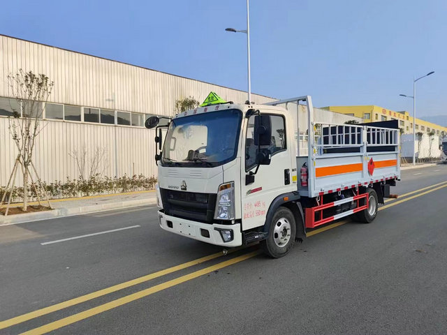 重汽豪沃氣瓶運輸車上裝配置:欄板長寬高:4100X2050X550(MM),車輛外部采用專用冷軋鋼板,內部采用鋁板,夾層復合阻燃材料,嚴格控制防火阻燃性,車廂內以及邊部安裝的有煙霧報警器以及固定裝置,廂體貼‘易燃氣體’危險品標識。