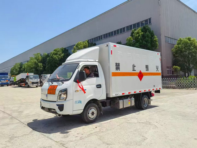 吉利新能源易燃液體運(yùn)輸車上裝配置:廂體長寬高:2300X1700X1700(MM),車輛外部采用專用冷軋鋼板,內(nèi)部采用鋁板,夾層復(fù)合阻燃材料,嚴(yán)格控制防火阻燃性,車廂內(nèi)以及邊部安裝的有煙霧報(bào)警器以及固定裝置,廂體貼‘易燃液體’危險(xiǎn)品標(biāo)識。