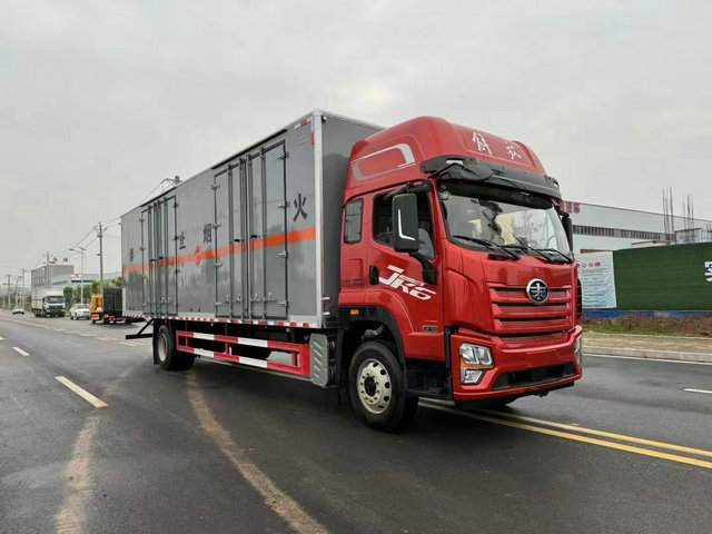 一汽解放易燃液體運(yùn)輸車上裝配置:廂體長寬高:9600X2400X2600(MM),車輛外部采用專用冷軋鋼板,內(nèi)部采用鋁板,夾層復(fù)合阻燃材料,嚴(yán)格控制防火阻燃性,車廂內(nèi)以及邊部安裝的有煙霧報(bào)警器以及固定裝置,廂體貼‘易燃液體’危險(xiǎn)品標(biāo)識。