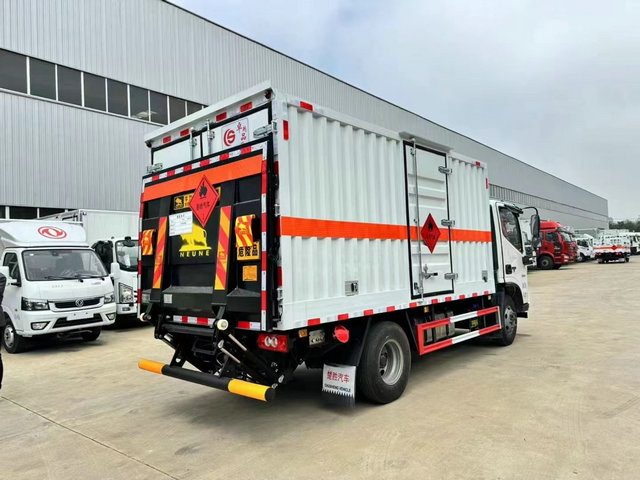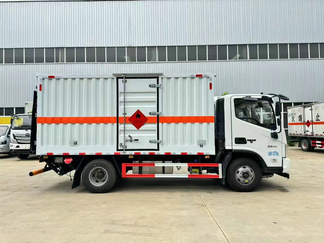 福田歐馬可易燃液體運(yùn)輸車上裝配置:廂體長寬高:4100X2200X2100(MM),車輛外部采用專用冷軋鋼板,內(nèi)部采用鋁板,夾層復(fù)合阻燃材料,嚴(yán)格控制防火阻燃性,車廂內(nèi)以及邊部安裝的有煙霧報警器以及固定裝置,廂體貼‘易燃液體’危險品標(biāo)識。