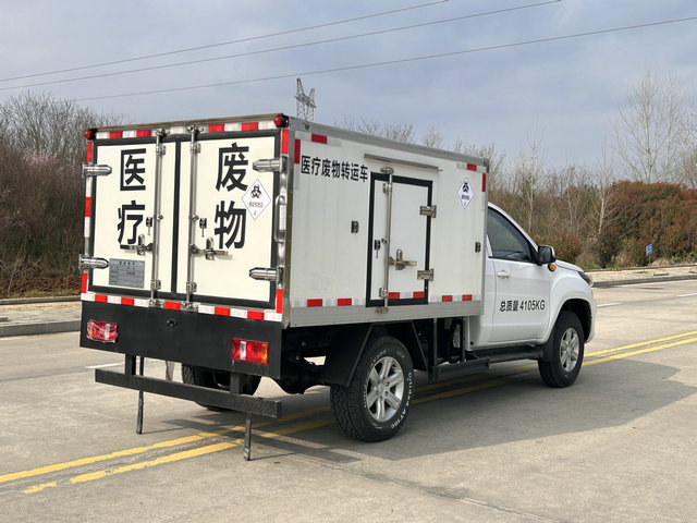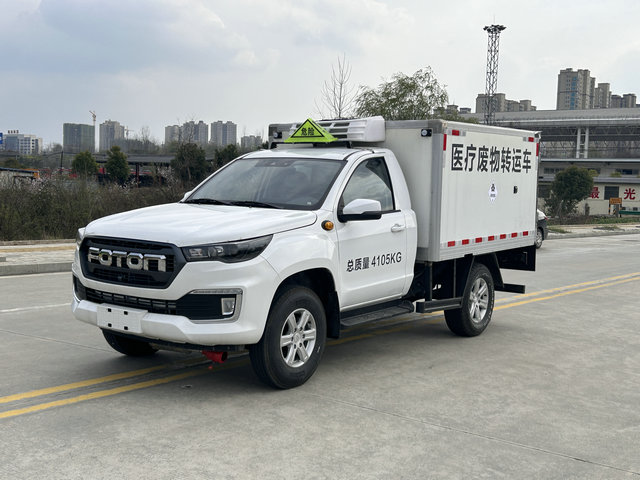 福田皮卡醫(yī)療廢物運輸車底盤配置:采用福田152馬力,4X4驅(qū)動,國六排放標準,五檔變速箱,7.00R16鋼絲胎,ABS,限速器,前碟后股,防爆輪胎警示標志,安全帶未系標志,制動襯片磨損報價裝置,斷氣剎,原廠空調(diào),中控鎖,限速80.