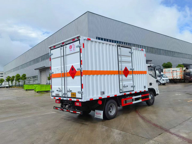福田歐馬可腐蝕性物品廂式運輸車上裝配置:廂體長寬高:4200X1900X1800(MM),荷載噸位:900(KG),車輛外部采用專用冷軋鋼板,內(nèi)部采用鋁板,夾層復(fù)合阻燃材料,嚴格控制防火阻燃性,車廂內(nèi)以及邊部安裝的有煙霧報警器以及固定裝置,廂體貼‘腐蝕品’危險品標識。