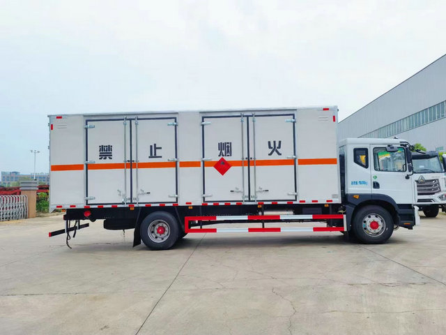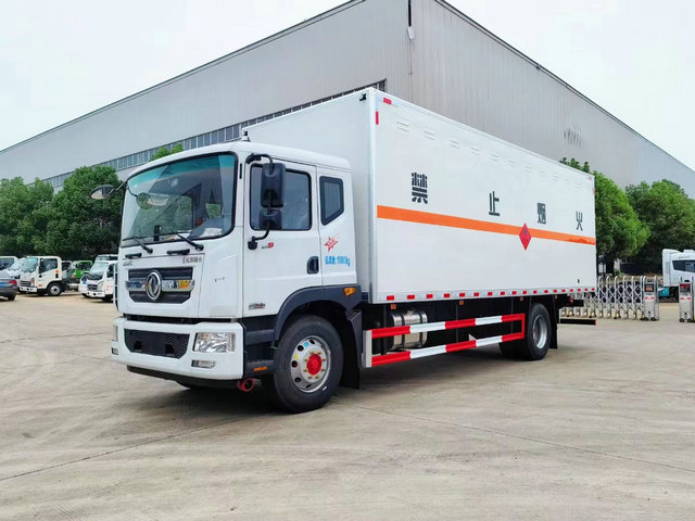 東風(fēng)D9腐蝕性物品廂式運(yùn)輸車上裝配置:廂體長寬高:6800X2400X2400(MM),核載噸位:10.7噸,車輛外部采用專用冷軋鋼板,內(nèi)部采用鋁板,夾層復(fù)合阻燃材料,嚴(yán)格控制防火阻燃性,車廂內(nèi)以及邊部安裝的有煙霧報(bào)警器以及固定裝置,廂體貼‘腐蝕品’危險(xiǎn)品標(biāo)識。