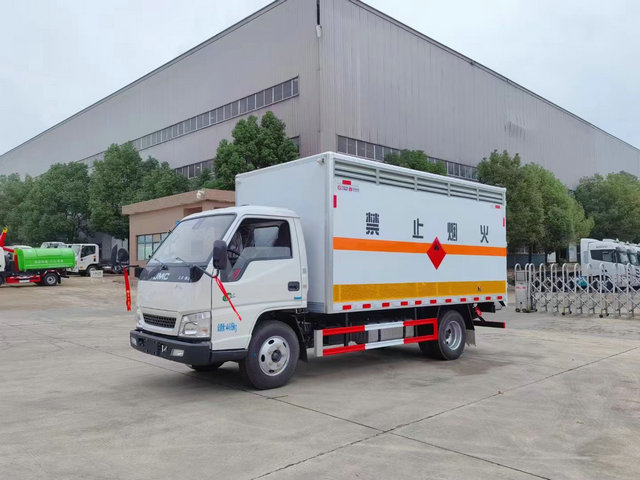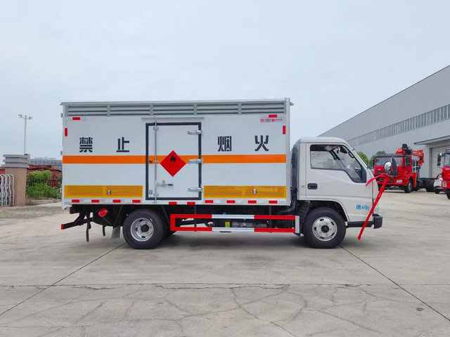 江鈴危險品廢物輸車上裝配置:廂體長寬高:4150X1850X1730(MM),核載噸位:1.4噸,車輛外部采用專用冷軋鋼板,內(nèi)部采用鋁板,夾層復(fù)合阻燃材料,嚴(yán)格控制防火阻燃性,車廂內(nèi)以及邊部安裝的有煙霧報警器以及固定裝置,廂體貼‘雜項’危險品標(biāo)識。
