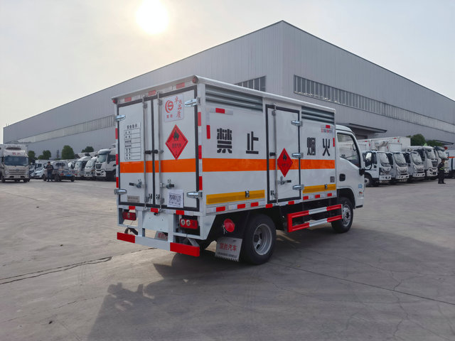 躍進(jìn)危險品廢物輸車上裝配置:廂體長寬高:3350X1750X1740(MM),核載噸位:0.74噸,車輛外部采用專用冷軋鋼板,內(nèi)部采用鋁板,夾層復(fù)合阻燃材料,嚴(yán)格控制防火阻燃性,車廂內(nèi)以及邊部安裝的有煙霧報警器以及固定裝置,廂體貼‘雜項’危險品標(biāo)識。