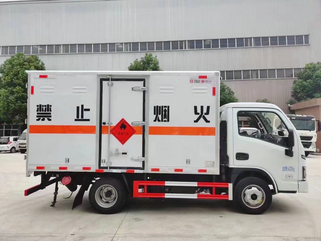 躍進危險品廢物輸車上裝配置:廂體長寬高:3350X1675X1700(MM),核載噸位:1.8噸,車輛外部采用專用冷軋鋼板,內(nèi)部采用鋁板,夾層復合阻燃材料,嚴格控制防火阻燃性,車廂內(nèi)以及邊部安裝的有煙霧報警器以及固定裝置,廂體貼‘雜項’危險品標識。