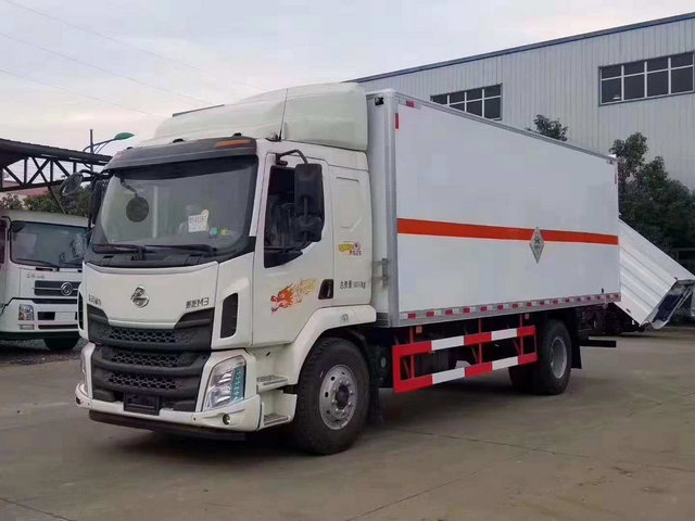 該車品牌為柳汽新款乘龍駕駛室車型,貨箱長(zhǎng)寬高為:6800X2400X2180(MM),額載噸位:9.99噸,玉柴185馬力發(fā)動(dòng)機(jī),六檔變速箱,是目前二類三項(xiàng)毒性氣體當(dāng)中唯一一款品質(zhì)更好的危險(xiǎn)品運(yùn)輸車型。